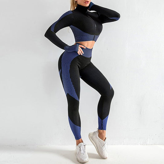 Dark Blue/peach Stand-Up Collar Top High Rise Leggings Young Style Suitable Fitness Yoga